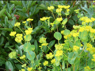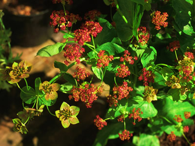 Bupleurum griffithii / syn. Bupleurum rotundifolium 'Griffithii' or 'Griffiti' (Thorow Wax - because it appears to grow (waxes) through the leaves)